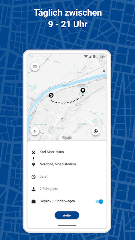 Di lebih 180 perhentian di Trier: muatkan aplikasi - tempah pengangkutan ulang-alik - pandu pergi