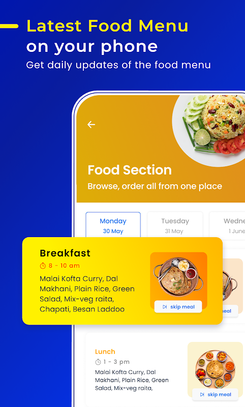 Kena ke mess untuk check menu makanan setiap hari? Anda tidak perlu melakukannya lagi. Anda boleh menyemak menu kucar-kacir dan masa dalam apl.