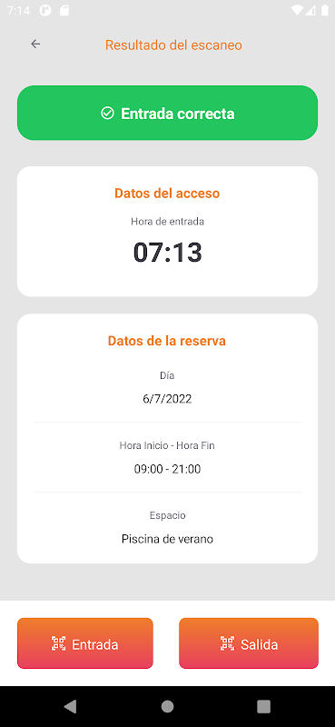 Setelah pintu masuk telah diimbas, sistem menawarkan semua maklumat yang berkaitan dengan tempahan dan pengguna, untuk membenarkan akses dengan betul.
