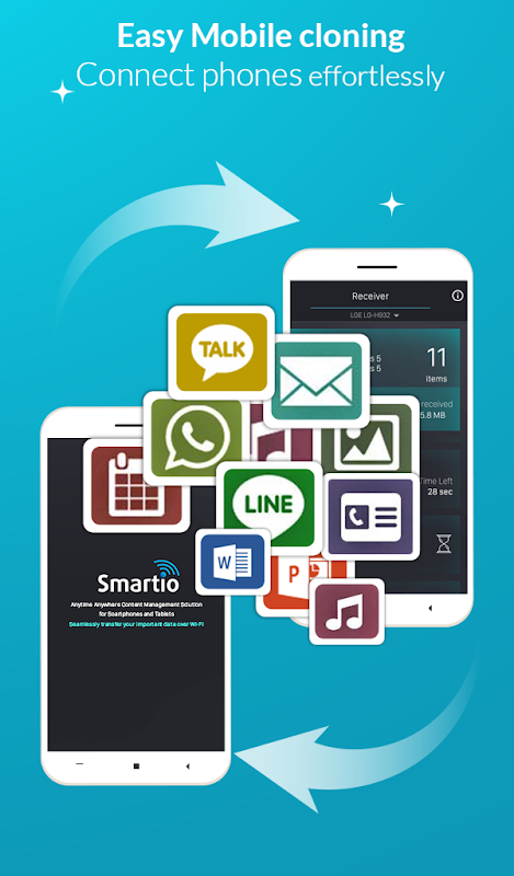 SmartIO - Aplikasi Transfer File Cepat menyediakan solusi transfer konten ke semua platform smartphone utama seperti iOS & Android. Transfer data dapat dilakukan pada platform yang sama atau melalui transfer lintas platform. Ini adalah aplikasi transfer konten terbaik yang memungkinkan Anda mentransfer data dari satu ponsel ke ponsel lainnya (transfer android ke iphone & transfer ios ke android) dengan cara yang paling mudah. Ini adalah aplikasi kloning data ponsel transfer cepat, memungkinkan konektivitas melalui pemindai kode QR dalam waktu singkat, dan secara efisien dapat mengelola transfer konten di aplikasi berbagi aman terbaik.