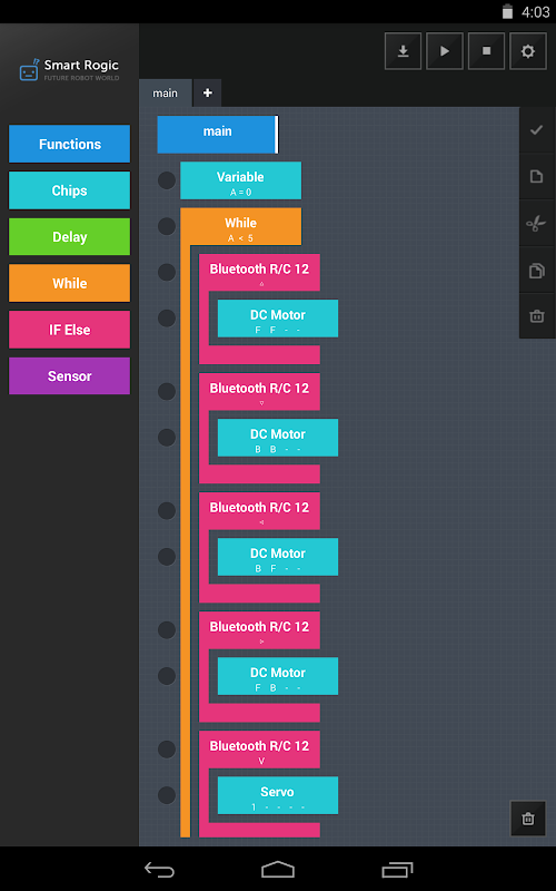Ia adalah program yang mengawal pergerakan robot menggunakan peranti pintar.