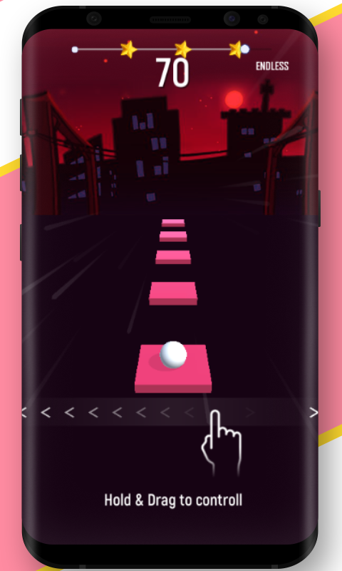 1. sentuh, tahan, dan seret ke 2 sisi untuk mengontrol bola untuk melompati Ubin.