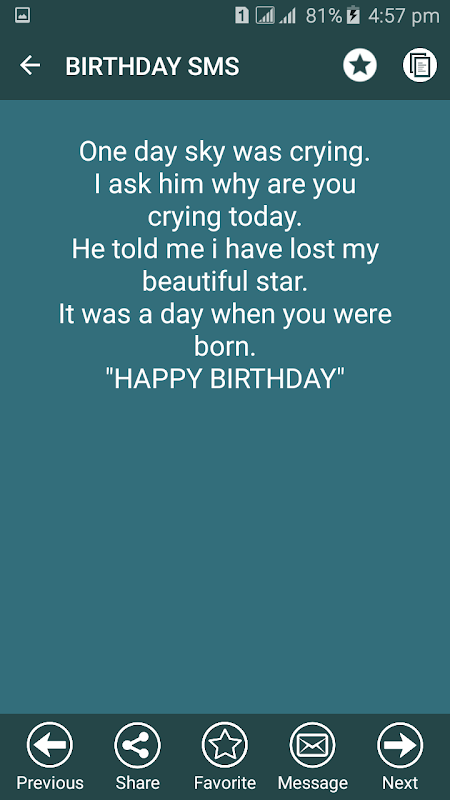 SMS DIARY is a offline and free application with latest collection of text messages. It has a collection of over 3000 plus text sms. Anyone can send those awesome text sms within a single click. You can impress your friends with friendship sms, goodmorning sms, goodnight sms, valentine day sms, new year sms, birthday sms and many more categories.