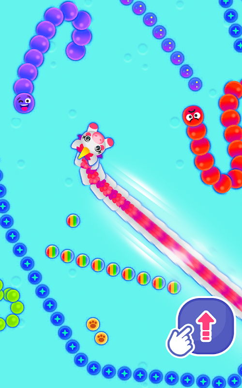 - Kawal Ular Anda: Leret untuk menavigasi ular anda dan kumpulkan bola berwarna-warni.