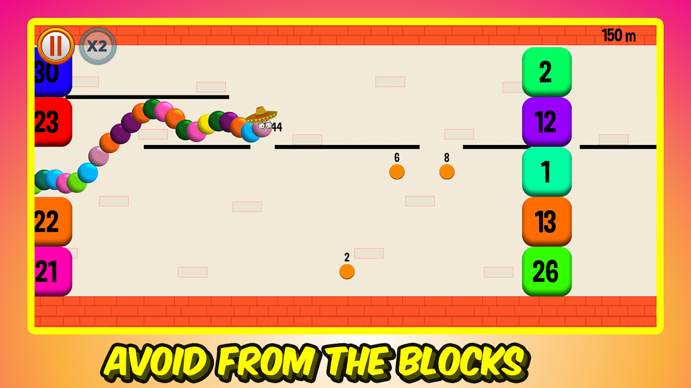 Ketuk dengan jari anda untuk memandu ular bola dan memecahkan blok.