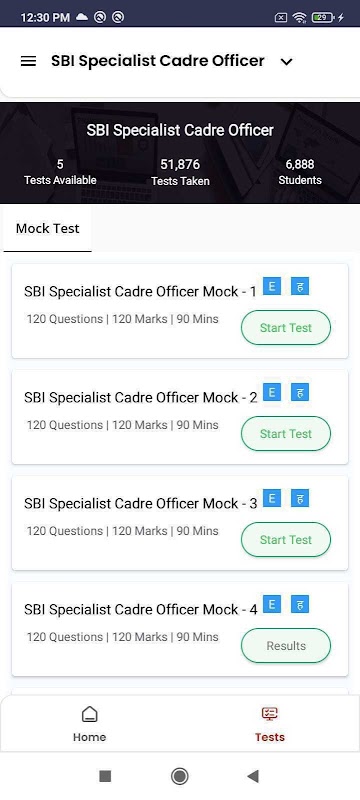 Terokai siri ujian yang komprehensif, navigasi berbilang peperiksaan menggunakan ciri carian dan pemilihan yang mesra pengguna, semuanya boleh diakses dengan mudah pada satu skrin.
