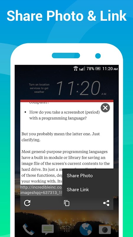Kongsi Pautan - Apl akan menjana imej tangkapan skrin yang diambil.