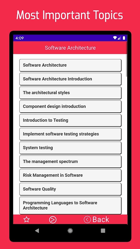 Software architecture designing app is essential for students. It will gives you example and explanation. This Software architecture app will provide you common & useful chapters. So now you can carry your Software architecture book collection anywhere by this app and can learn anytime.