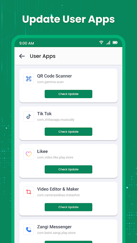 Dengan ciri penyemak kemas kini automatik, pengguna boleh melihat senarai kemas kini yang belum selesai dengan mengklik butang kemas kini yang belum selesai. Pengguna mendapat semua kemas kini permainan dan apl yang belum selesai dalam satu senarai dan anda boleh dengan mudah mengenal pasti permainan dan apl anda yang mempunyai versi terkini yang tersedia di gedung mainan. Penyemak kemas kini automatik tidak akan terlepas sebarang kemas kini dan akan memastikan apl mudah alih anda dikemas kini.