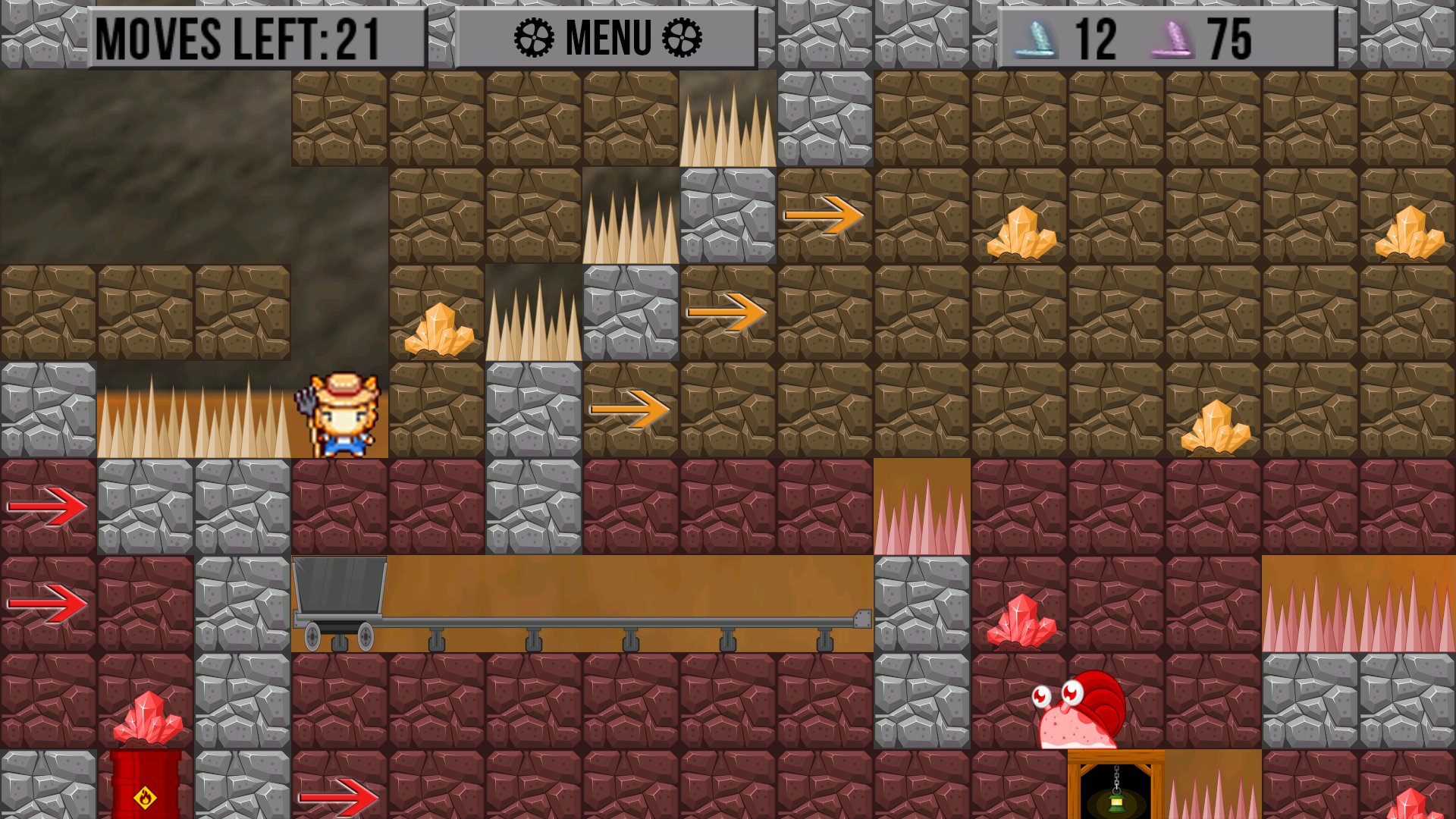 Soil Down is a two dimensional puzzle game with many levels and more coming every few weeks. Interact with the environment to try and reach the last layer and through the exit. Although there are many blocks to help you reach the end you have to make sure you don't run out of moves, doing so will place you back to the beginning. The spike blocks aren't the only one out there to kill you, avoiding the deadly snails is probably a smart idea.