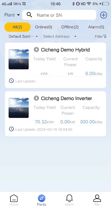 Aplikasi Solar.on ialah produk pemantauan PV yang menyepadukan pemantauan masa nyata, tolakan mesej yang tepat, penggera pintar, operasi dan penyelenggaraan yang cekap, kawalan naik taraf jauh, skrin visual yang besar dan analisis statistik. Ia boleh memantau status operasi penyongsang PV dan peranti lain dalam masa nyata. Kira tenaga dan kecekapan dimensi peranti dan loji secara automatik, dan cari loji yang rosak dengan cepat, membantu kakitangan operasi dan penyelenggaraan untuk menyelesaikan kerja penghapusan kecacatan di tapak dengan cepat.