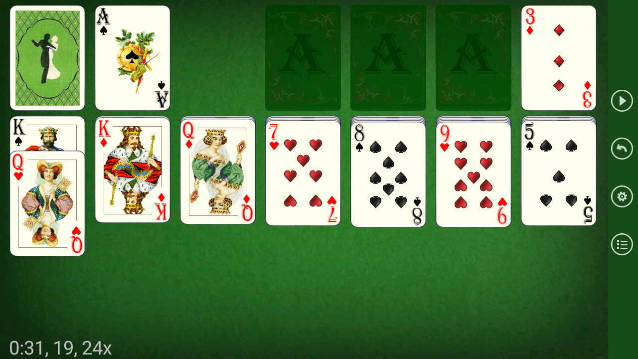 + Tiga jenis permainan solitaire: Klondike, Spider dan Freecell