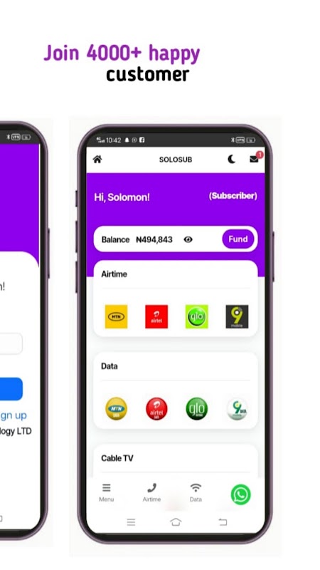Solosub is a reliable and affordable platform to get your data bundles of all network.