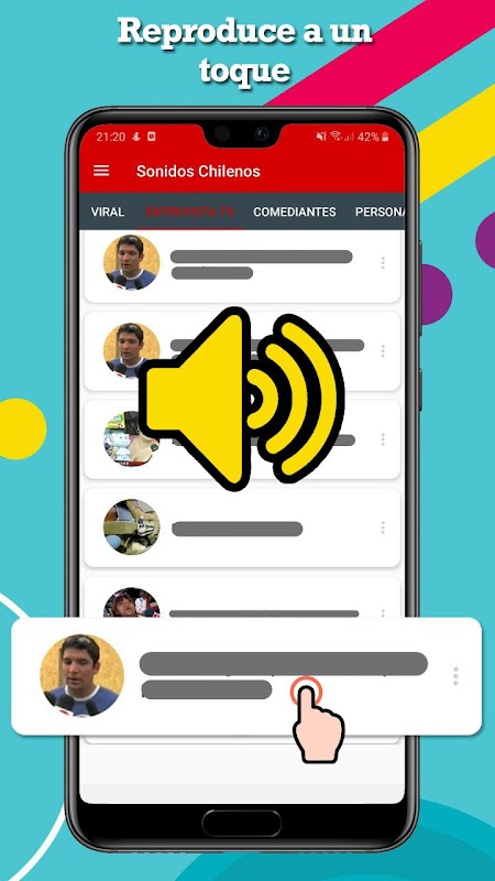 Dalam aplikasi Chilean Bunyi anda dapat dengan cepat mengakses suara yang telah menjadi popular di rangkaian sosial di negara kita. Anda juga boleh membagikannya untuk dibuat semula dalam aplikasi seperti whatsapp atau telegram.