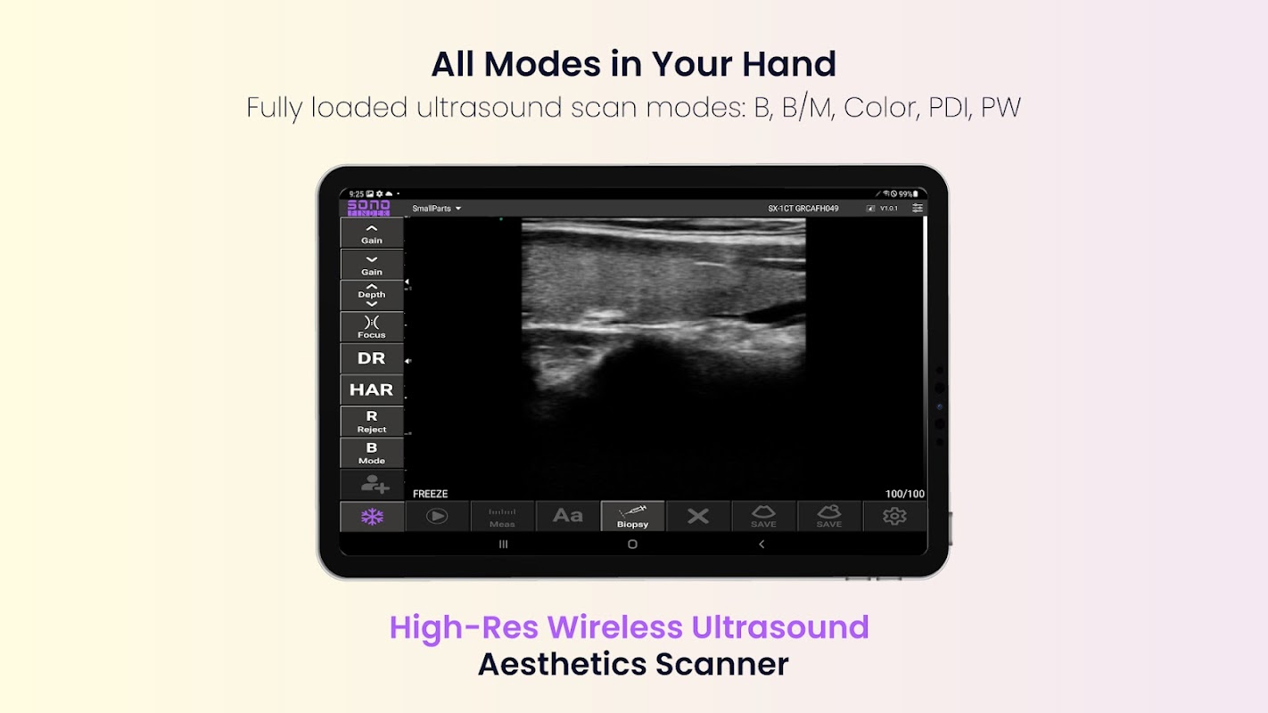 Ini adalah Aplikasi khusus untuk Pengimbas WirelessUltrasoundAesthetics Resolusi Tinggi SONOFINDER.