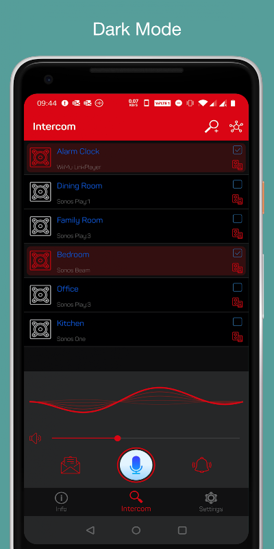 Bercakap dengan mikrofon telefon / tablet Android di SonosTalk, SonosTalk boleh memainkan suara melalui pembesar suara WiFi seperti interkom suara.