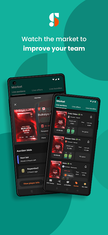 Muat turun apl untuk mengurus keahlian anda, lihat maklumat perlawanan terperinci dengan statistik pemain, termasuk mata fantasi yang dipecahkan mengikut skor yang menentukan dan menyeluruh. Aplikasi ini juga termasuk peninjauan pemain dan alatan pasaran untuk membantu pengurus Sorare menemui kad pemain yang mereka mungkin mahu beli, dan melihat nilai pasaran kad tersebut dalam semua kekurangan.