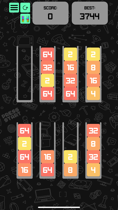 Sort 2048 is a fun hypercasual puzzle game. The objective of this game is getting the 2048 tile and even further more. You can only move tiles which have the same number. Once you have done this, both tiles merge in their sum. This game contains: