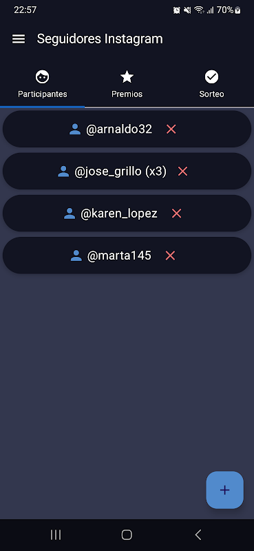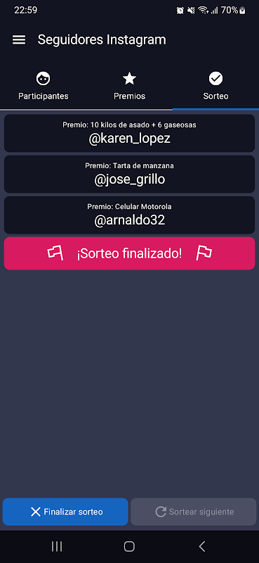 - Cabutan mengikut senarai: membolehkan anda menjana senarai peserta dan hadiah. Ia juga membenarkan lukisan tanpa hadiah, serta membenarkan atau mengelakkan pengulangan dan membalikkan susunan hadiah yang akan diundi.