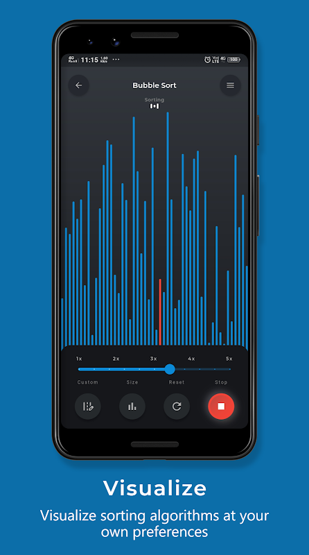 Sortlizer adalah visualizer penyortiran yang digunakan untuk memvisualisasikan algoritma penyortiran yang berbeza dengan mudah dan lancar.