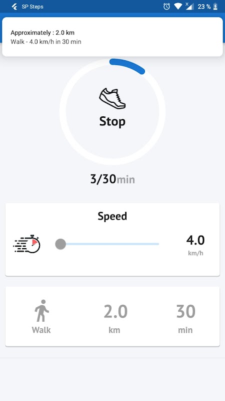Langkah SP membantu anda merakam langkah ke data Kecergasan anda pada peranti yang dikaitkan dengan akaun Google anda. Anda boleh menentukan kelajuan di mana anda mahu melakukan perjalanan, yang anda boleh berjalan atau berlari.