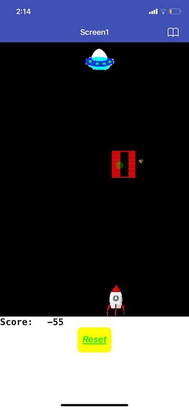 This space invaders game has a new feature where when the rocket shoots the saucer, the saucer will drop a TNT bomb that reduces the player's score by 5.
