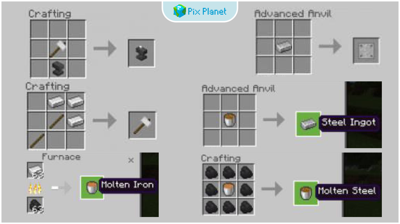 Digunakan untuk membuat bahagian roket. Untuk mendapatkan meja kerja, anda memerlukan satu item lagi - landasan yang lebih baik. Di bawah ini adalah barang kraf.