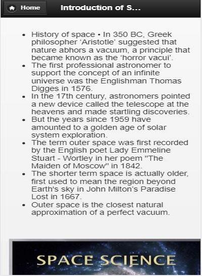 Space Science adalah aplikasi pendidikan untuk pelajar. Ini menyediakan pendidikan asas mengenai Sains Angkasa .. aplikasi ini sangat membantu pelajar Sains Angkasa.