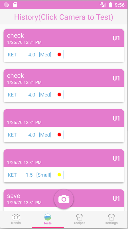 Apl Spark DietTracker menyediakan cara baru dan mudah untuk menjejaki diet anda (Keto, Paleo, Low-Carb, Atkins atau Alkali). Aplikasi ini menggabungkan jalur ujian automatik membaca Strong Diagnostics Strips Test Strips (Ux-1k) dan Ketone / pH Test Strips (Ux-2ka) produk. Ia mengintegrasikan produk ujian Spark Diagnostik dengan lancar untuk mengukur keton atau pH Urine untuk merakam dan mengesan keberkesanan diet.