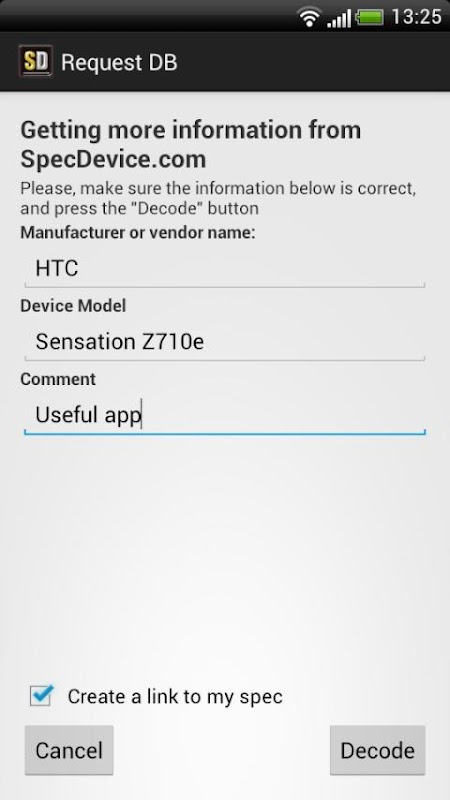 Ia mendapati semua maklumat yang mungkin teknikal mengenai peranti anda, dan pilihan ketetapan butiran tambahan dari dabtabase jauh.