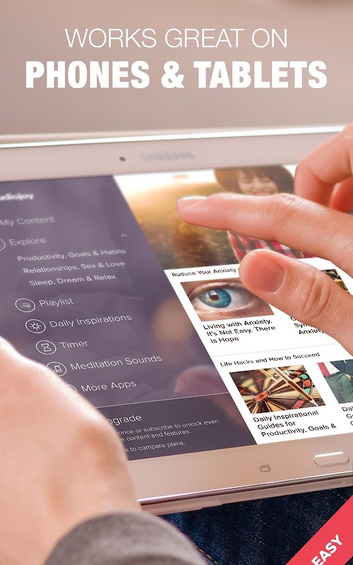 GET ON TRACK - Audiojoy makes it simple. Listen to a guided meditation every day and stay disciplined. Explore a rich library of tracks on zen, yoga, mind-hacking and more.