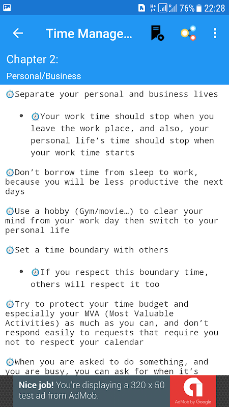 Your suggestions will be welcome to be implemented in the app, either in design or in the content, if it's relevant and kept short and simple and to the point on the time management topic.