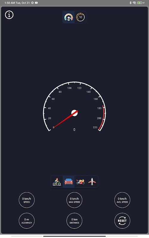 Aplikasi meter kelajuan GPS, yang menggunakan data lokasi anda untuk memaparkan kelajuan semasa anda, dan kelajuan maksimum anda yang telah anda capai.