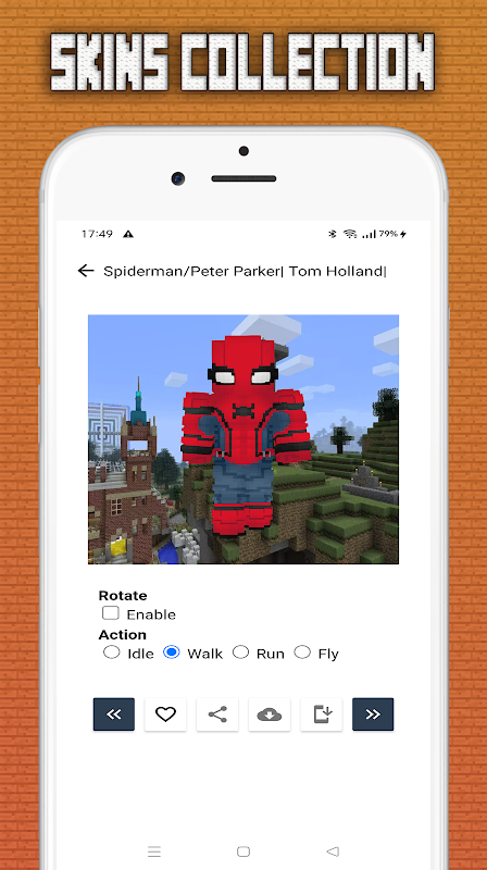 Spider Man Skins ialah aplikasi ialah aplikasi yang membantu anda mendapatkan kulit daripada Spider Superhero secara percuma, dan boleh dipasang terus ke dalam permainan minecraft anda.