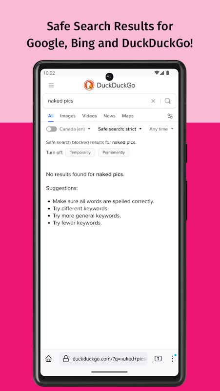 Dapatkan Pelayar Selamat SPIN untuk menapis pornografi, kandungan yang tidak sesuai dan memastikan hasil carian selamat di Google, Bing, Ecosia dan DuckDuckGo. Pelayar Selamat SPIN juga menjadikan YouTube lebih selamat dengan menguatkuasakan Mod Sekatan. Sangat disyorkan oleh pengguna forum NoFap! SPIN adalah percuma, dengan pilihan yang boleh disesuaikan tersedia melalui langganan SPIN+ kami (termasuk percubaan percuma 3 hari).