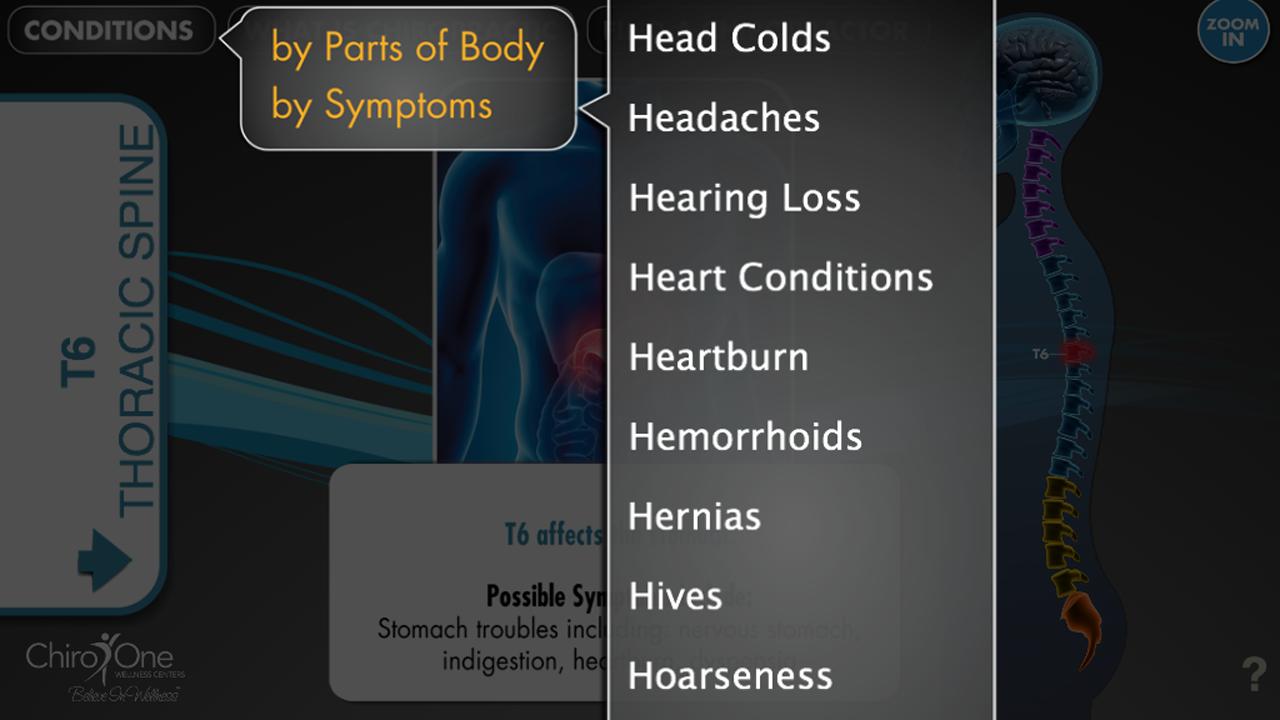 -Easy to read full text descriptions about each individual vertebrae and the possible symptoms that are caused from a misalignment in that area.