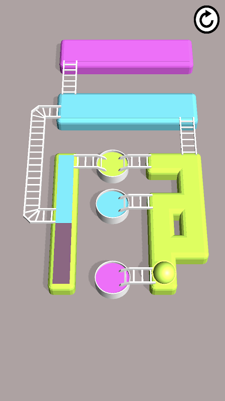 Dash your ball across the scene ! Dip it into the paint buckets and paint the ground as you go, making sure the colours match with the surrounding walls! Are you smart enough?