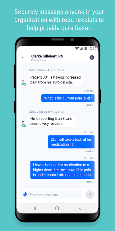 • Pemesejan selamat yang mematuhi HIPAA dengan status mesej (Dihantar / Dihantar / Dibaca)