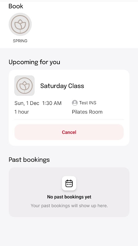 Apl Spring Pilates membolehkan anda menempah kelas secara bersemuka