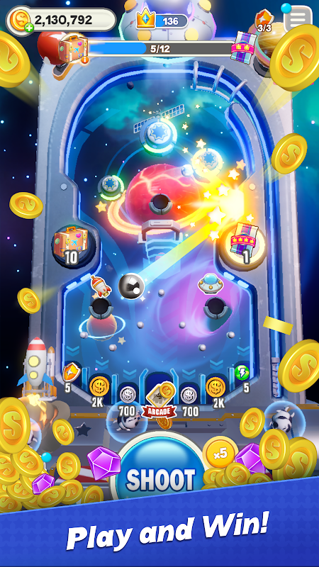 ● Generasi baharu mesin pinball: Gabungan kesan bunyi dan cahaya, trek yang rumit, cakera berputar tersembunyi dan penolak syiling yang menghujani khazanah, dan banyak lagi! Ayuh menang besar bersama kami!