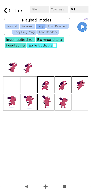 Pemotong Animasi Sprite mempunyai 6 mod main balik: