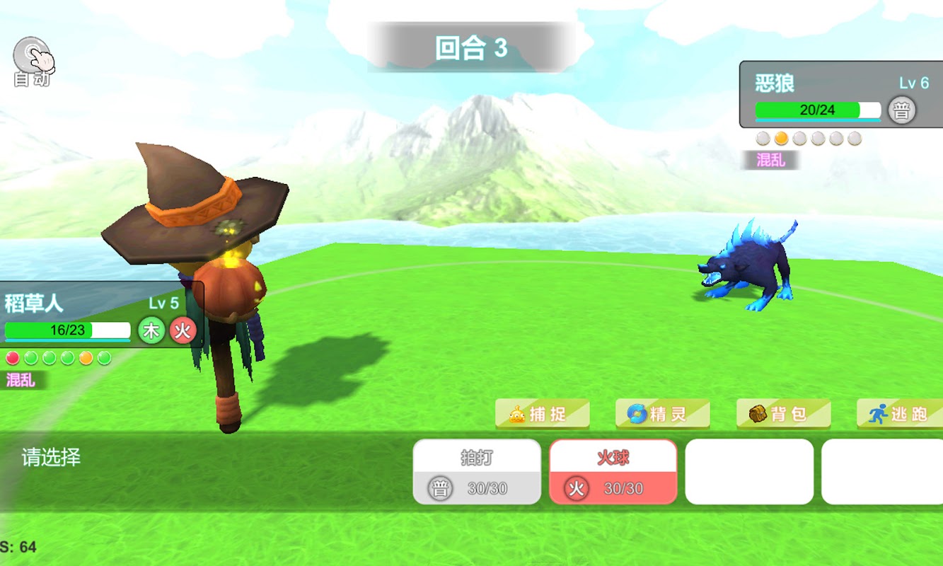 Permainan mudah alih pusingan 3D, boleh menangkap, memupuk, melawan dan pengembaraan.