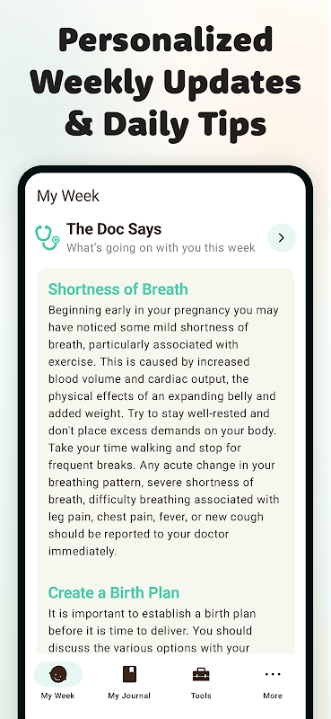 • Dapatkan pandangan pakar dan kemas kini kehamilan harian yang disesuaikan dengan peringkat anda.