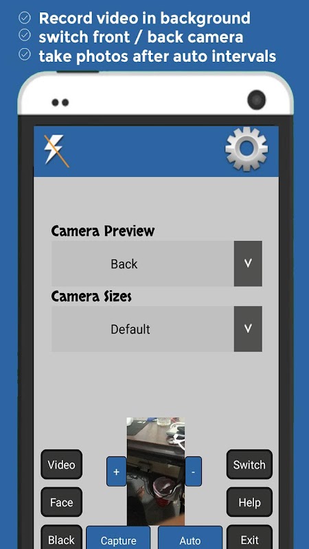 Take pictures and record videos in the background without showing the camera preview window with this amazing Spy Camera app. The hidden Spy Camera app is very useful for recording videos and images without knowing the others. This hidden camera app has some amazing features that makethis application more awesome. You can also receive calls or make other work in your device while recording videos with the best Spy Camera app.