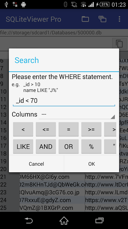pasaran: // butiran id = com.kokufu.android.apps.sqliteviewer.free