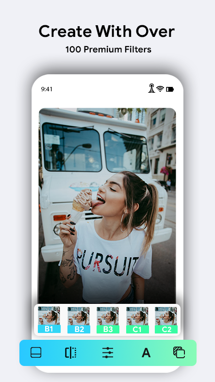 Kami menyediakan penyusun persegi untuk anda dengan latar latar kesan kabur dan sebagainya. Dan anda boleh menyusun gambar pada masa yang sama. Foto snap foto persegi adalah penyunting foto terbaik untuk memposting foto bersaiz persegi penuh tanpa memotong di Instagram. Tambahkan penapis dan tipografi yang hebat pada foto anda. Kami mempunyai penapis berkualiti tinggi sehingga gambar selfie anda benar-benar menonjol dari yang lain!