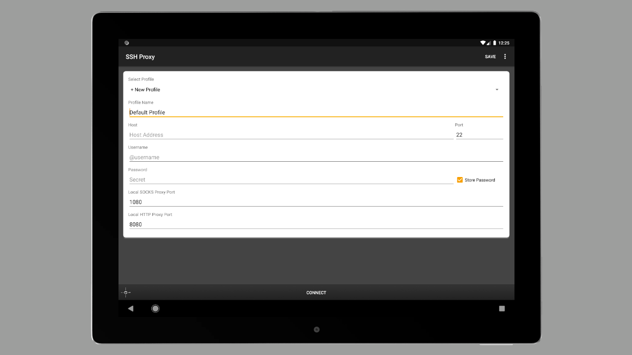 Membuat pelayan proksi HTTP dan SOCKS5 tempatan dengan membuat proksi ke pelayan SSH jauh. SSHProxy membolehkan aplikasi membuat proksi ke pelayan SSH yang menjadikan lalu lintas aplikasi keluar dari mesin hos SSH.