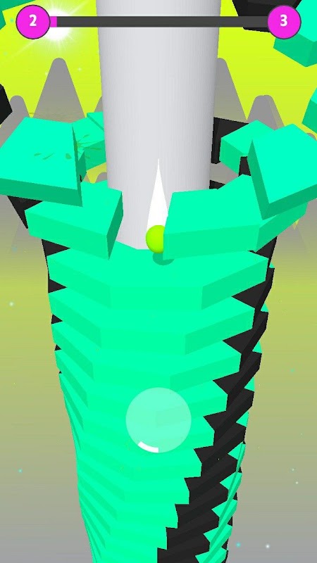 Press and hold on the screen and let the ball go down without touching the obstacles! Hold as long as possible to make combo and break the black blocks. Let the ball fall down from the helix stacks.