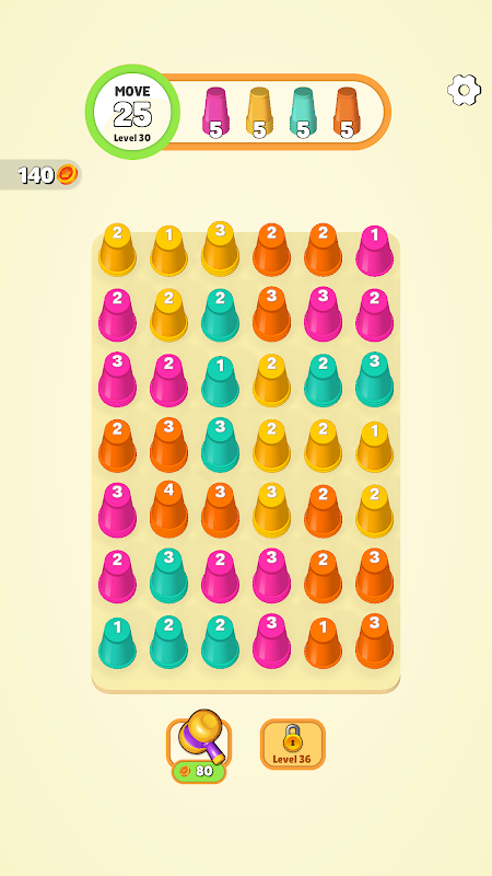 Apabila anda menyusun 10 atau lebih cawan dengan warna yang sama, ia akan sepadan.
