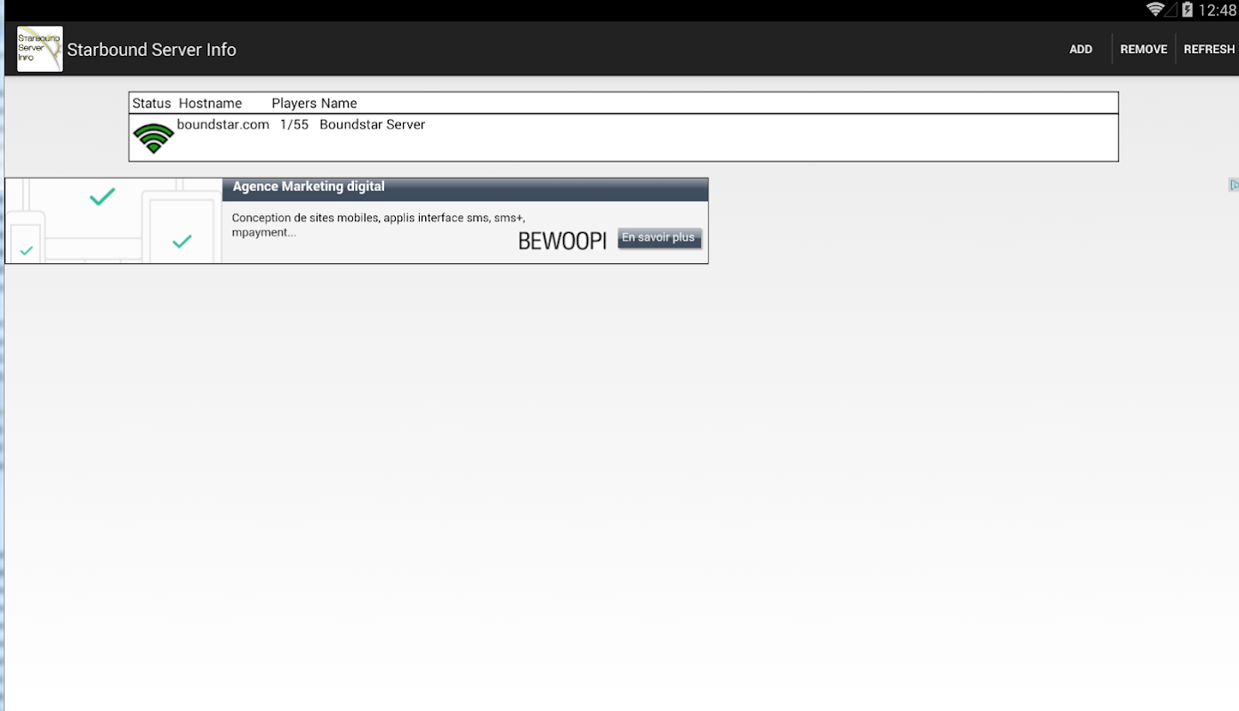 Permohonan ini membolehkan anda menguruskan senarai pelayan starbound dan memaparkan jika mereka berada dalam talian dan bilangan pemain aktif yang berkaitan
